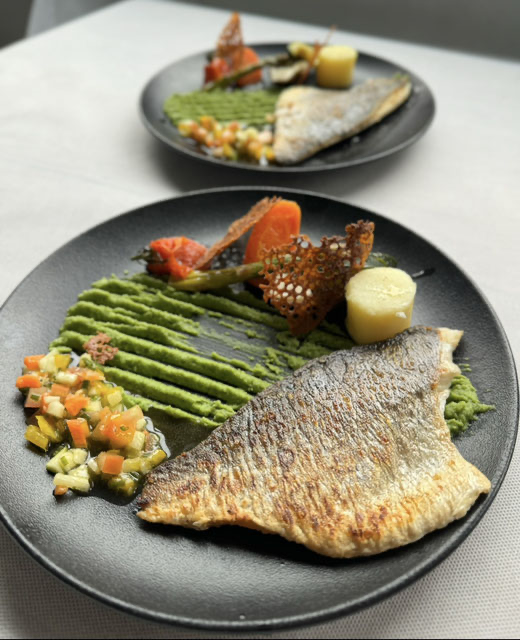 • PAVE DE DENTI, RISOTTO AUX LEGUMES, COMPOTEE DE FENOUIL